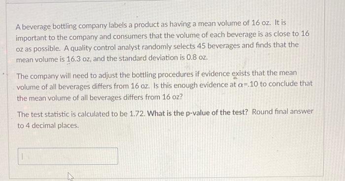 Solved A beverage bottling company labels a product as ...